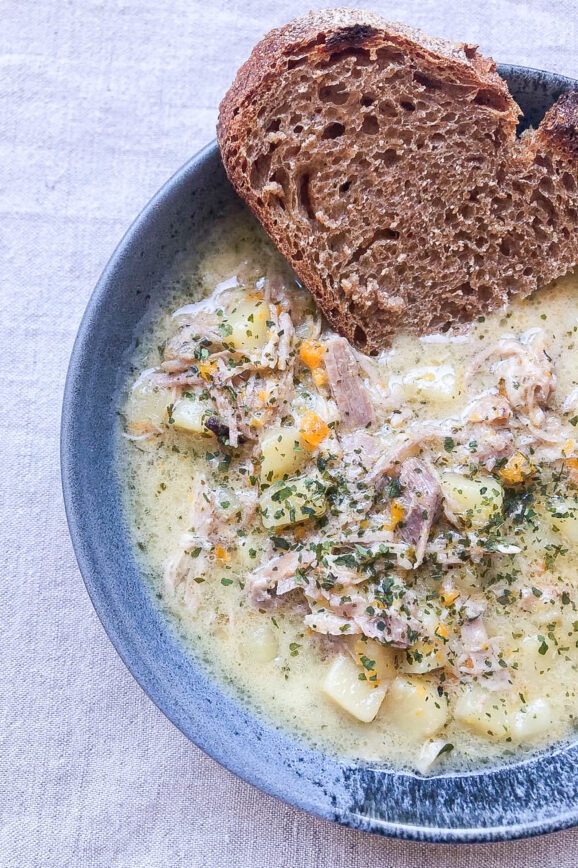 I tend to spend less than ten minutes hands on in my kitchen when I make this velouté soup. It is so easy to make as long as you have prepped your larder properly, doing so is a classic virtue as I see it, yet another one. A virtue I never really had the surroundings…