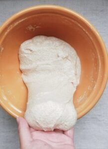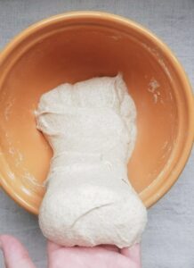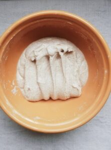 - Repeat 4 x stretch and fold, cover and leave to rest 30 mins.
