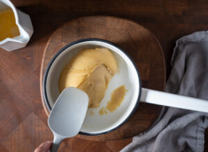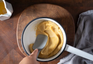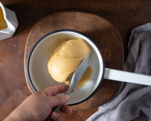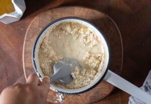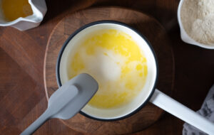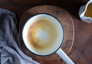 - Put your saucepan over medium/high heat until all of the butter is melted and the mixture boils slightly and creates a white foamy top.