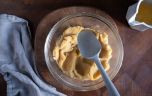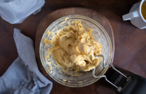 - If you are using home milled flour you will have a 4th egg to incorporate into the dough, just mix it in on low and medium speed and remember to clean down the sides of the bowl. Your dough will be ready now and looking similar to this. It should have a slight sheen and if you put a spatula into it, it will form a V that does not drip off immediately but slowly.