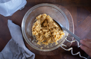 - Mix the dough on slow and then increase to medium speed. Stop when the dough has fully incorporated the egg and clean the sides of the bowl.