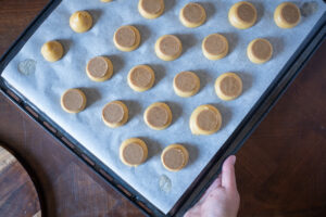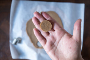 - When your choux pastry is ready, you can cut out the craquelin with a cutter that fits your cakes.